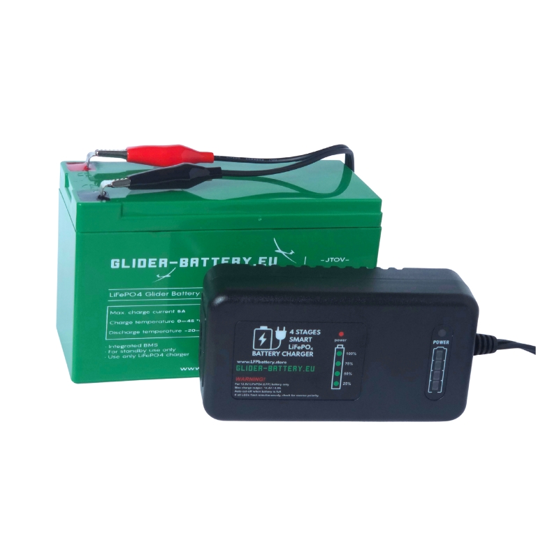 Four stages easy-to-use smart battery charger with solid 4 LED lights charging indicator. It is ideal for charging LiFePO4 batteries. Suits for 4 cells LiFePO4 battery pack.